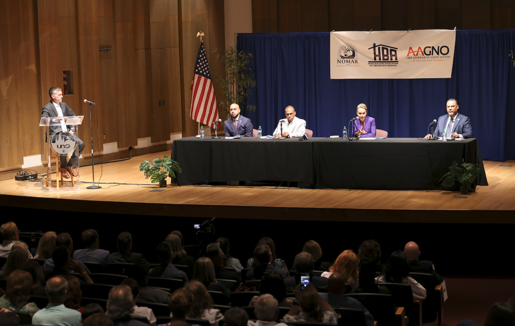 METAIRIE, La. – On Aug. 4, three key real estate organizations – the New Orleans Metropolitan Association of Realtors® (NOMAR), the Home Builders Association of Greater New Orleans (HBAGNO), and the Apartment Association of Greater New Orleans (AAGNO) – jointly hosted a New Orleans Mayoral Candidates’ Townhall spotlighting the real estate industry’s impact on the