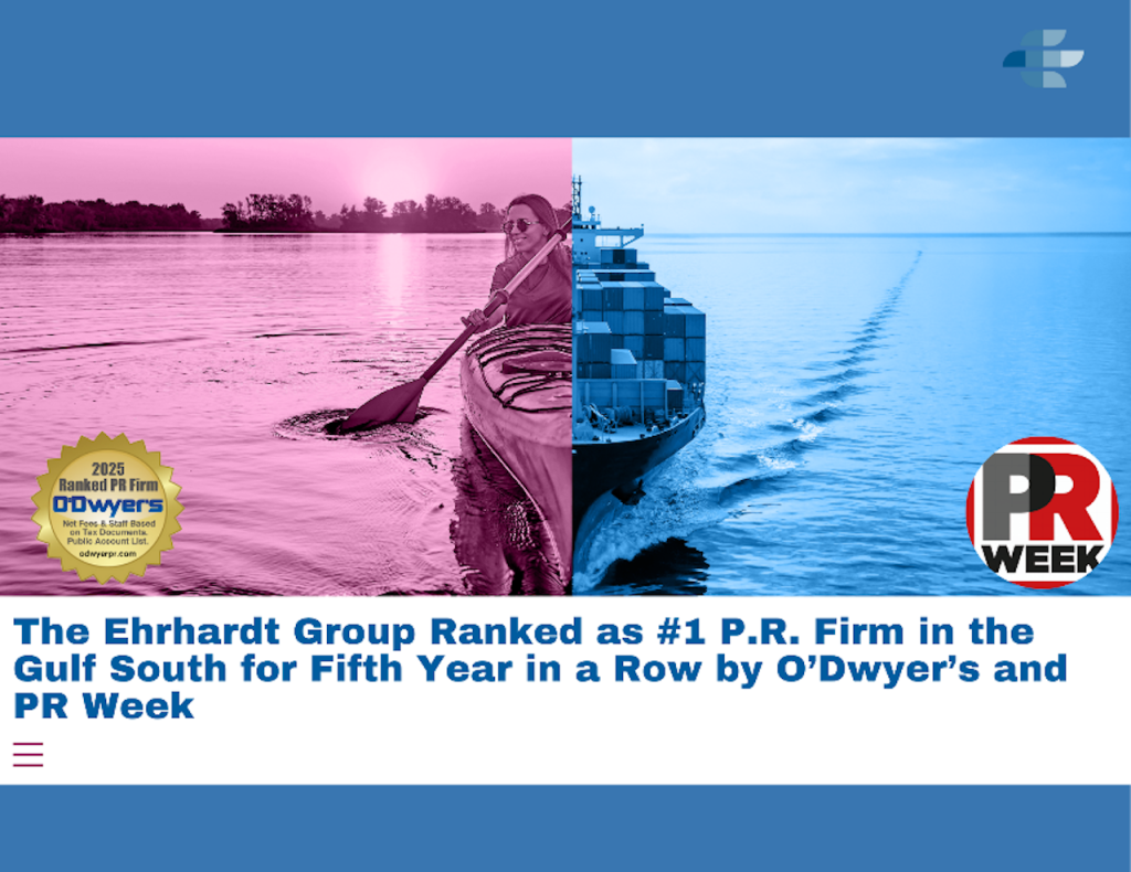 NEW ORLEANS (press release) – For the fifth consecutive year, The Ehrhardt Group (TEG) ranked as the top public relations firm in the Gulf South by both O’Dwyer’s and PRWeek, two international trade media outlets for the public relations field.