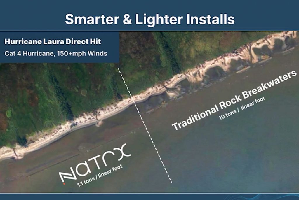 During the presentation, Nelson demonstrated how Natrx uses proprietary flow, wave, and wind modeling to design site-specific living infrastructure solutions that are both cost-effective and environmentally beneficial. He explained how Natrxmeasures biological performance through indicators such as marine life presence and changes in marsh health. Nelson also shared key lessons from recent projects, including a Louisiana case study where Natrx ExoForms outperformed traditional rock breakwaters during hurricane conditions.