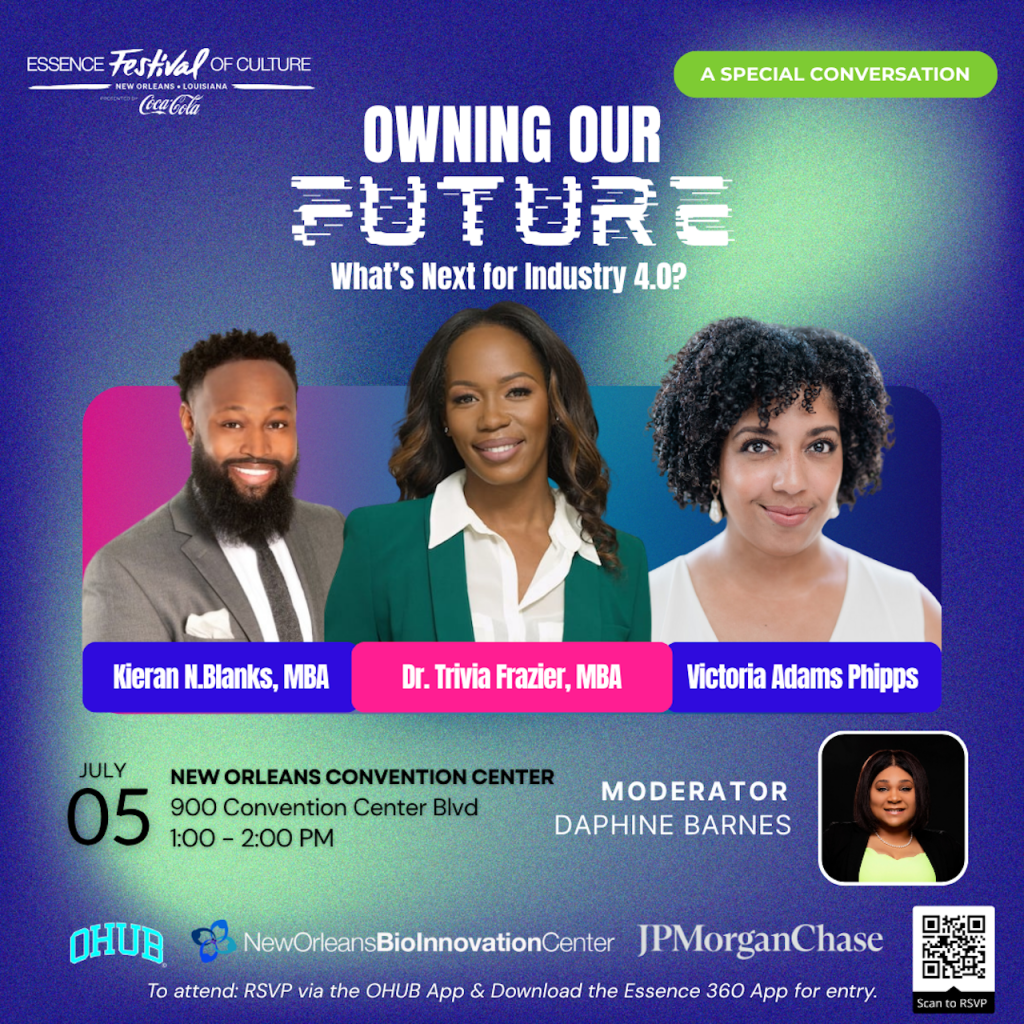 NEW ORLEANS (press release) – OHUB and the New Orleans BioInnovation Center are hosting “Owning our Future: What’s Next for Industry 4.0” on July 5th at 1:00 p.m. in Essence Fest’s New Voices Entrepreneur Village.