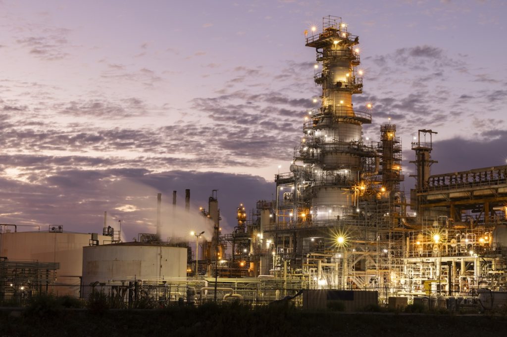 Carbon dioxide escapes from an industrial oil refining and storage operation. State Treasurer Supports Roll Back of EPA Climate Regulations. Getty image.