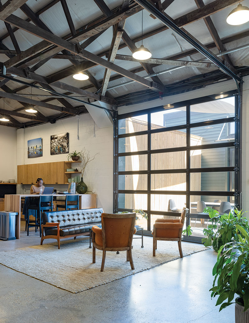 The aptly named Greenhouse, for example, utilizes a biophilic design to merge exterior landscaping, green space and natural sunlight with interior spaces. “On nice days we open the large garage door and let in the natural light,” said Carolyn Croom, Greenhouse community manager. Located in a converted warehouse along the Lafitte Greenway since 2023, the Greenhouse accommodates those who want to cycle or walk to work, providing a seamless transition from outdoor activities to the indoor workspace.